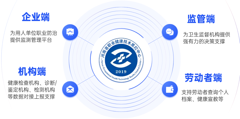 以立体网状的形式利用劳动者职业健康信息穿针引线,引入技术服务机构、用人单位、监管层等数据贯穿整个职业病防控体系。