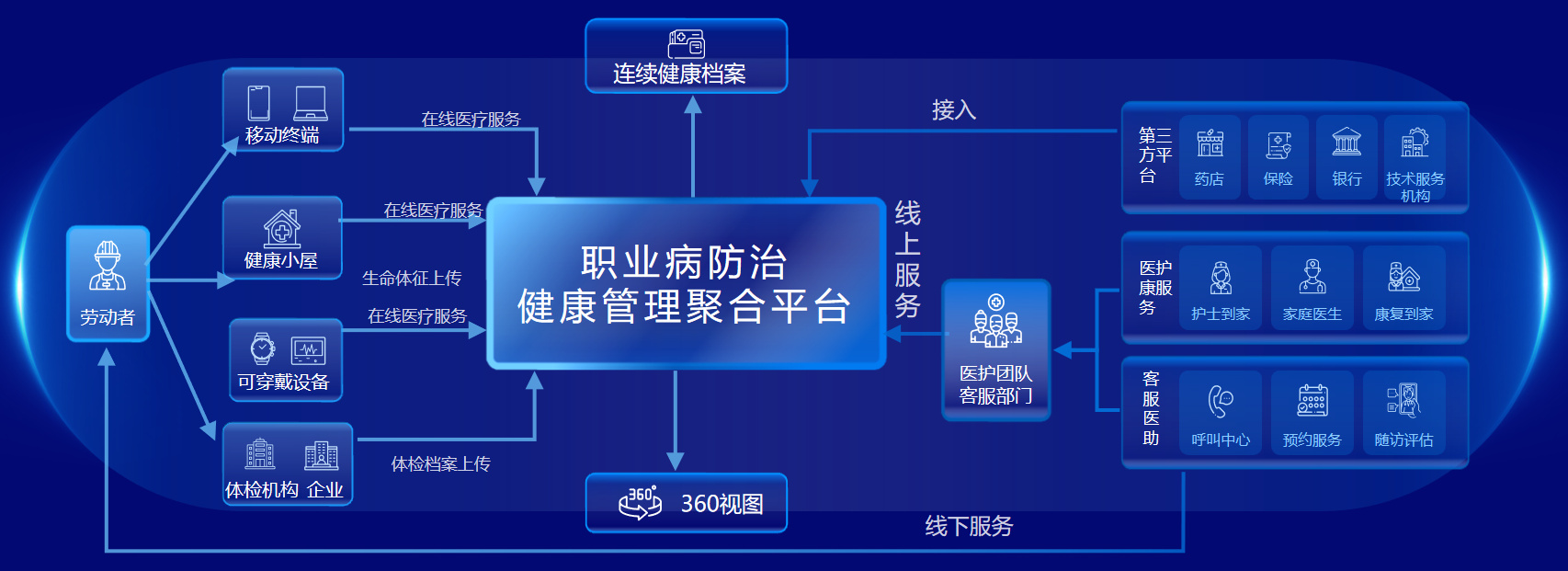 平台以职业健康为入口,逐步构建“医护康养”一体化数字生态。通过对接全民健康信息平台、接入可穿戴设备、引入家庭医生与康复服务资源,形成以劳动者为中心的全生命周期健康管理闭环,为构建“职业健康→医护康养→全民健康”的服务链条奠定基础。